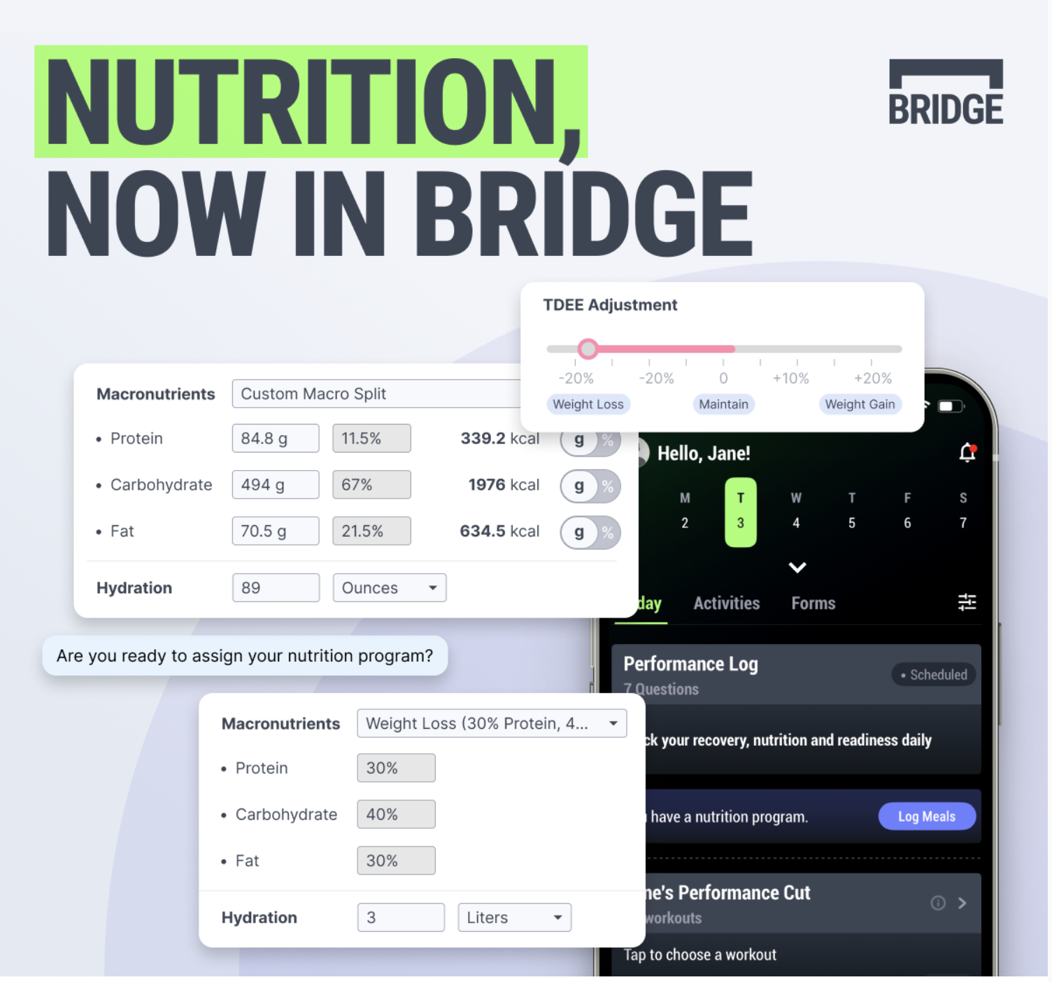 Your custom training program is delivered through BridgeAthletic directly to your phone via the Bridge iOS or Android app. Finally one application that tracks it all.